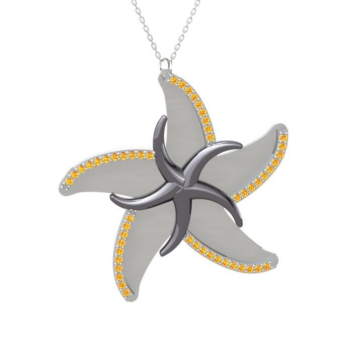 Naia Denizyıldızı Kolye - Sitrin 925 ayar siyah rodyum kaplama gümüş kolye (50 cm beyaz altın rolo zincir)
