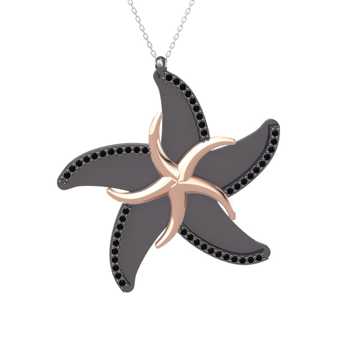 Siyah zirkon 8 ayar rose altın kolye (50 cm gümüş rolo zincir)