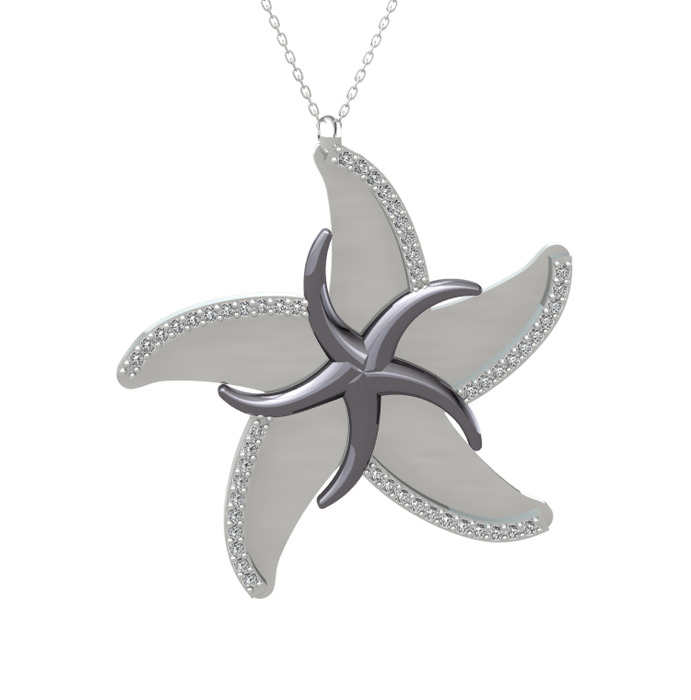 Swarovski 925 ayar siyah rodyum kaplama gümüş kolye (50 cm beyaz altın rolo zincir)