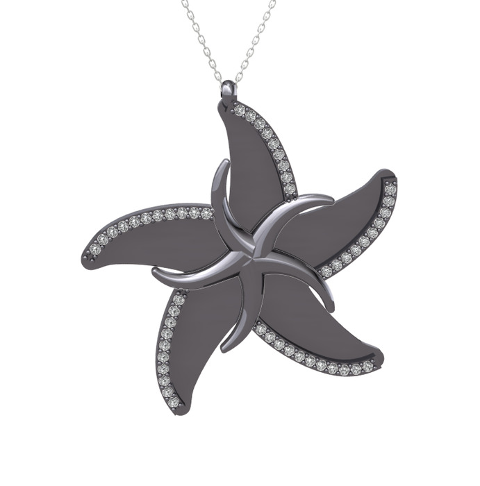 Swarovski 925 ayar siyah rodyum kaplama gümüş kolye (50 cm beyaz altın rolo zincir)
