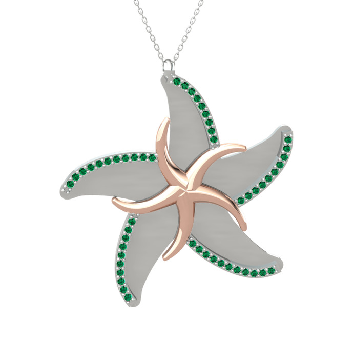 Yeşil kuvars 14 ayar rose altın kolye (50 cm beyaz altın rolo zincir)