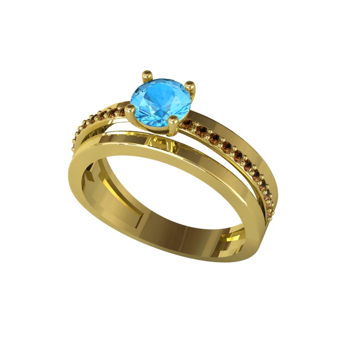 Akuamarin ve dumanlı kuvars 925 ayar altın kaplama gümüş yüzük