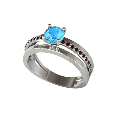 Akuamarin ve kök yakut 14 ayar beyaz altın yüzük