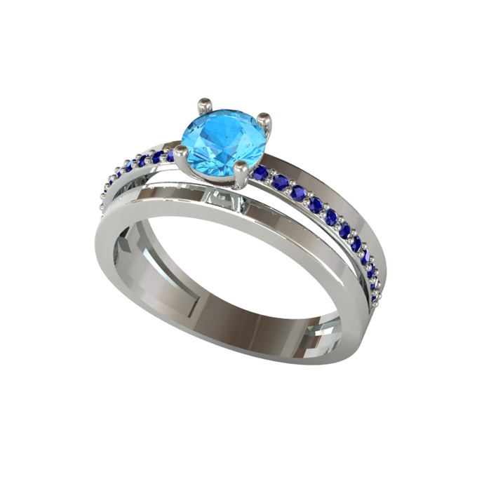 Akuamarin ve lab safir 18 ayar beyaz altın yüzük