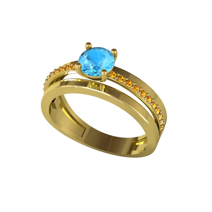 Akuamarin ve sitrin 14 ayar altın yüzük