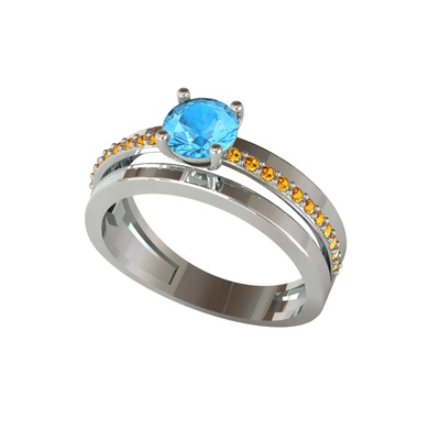 Akuamarin ve sitrin 8 ayar beyaz altın yüzük
