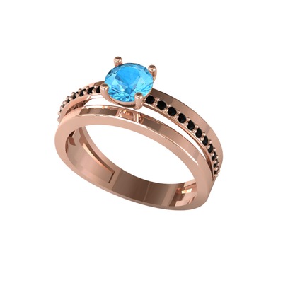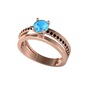 Akuamarin ve siyah zirkon 14 ayar rose altın yüzük