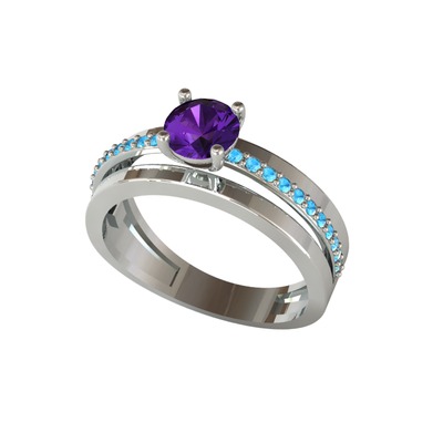 Ametist ve akuamarin 18 ayar beyaz altın yüzük