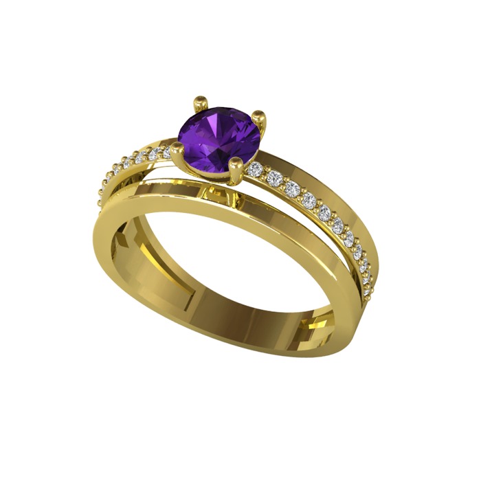 Ametist ve beyaz zirkon 18 ayar altın yüzük