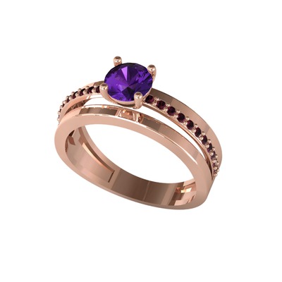 Ametist ve kök yakut 8 ayar rose altın yüzük