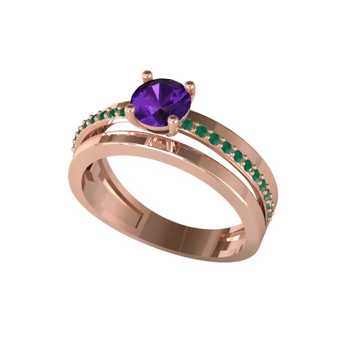 Ametist ve kök zümrüt 14 ayar rose altın yüzük
