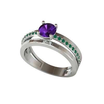 Ametist ve kök zümrüt 925 ayar gümüş yüzük