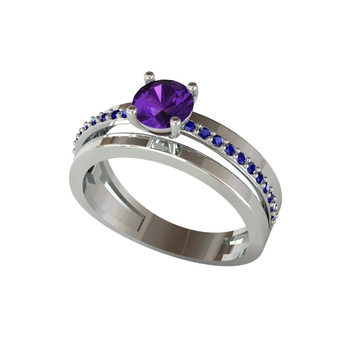 Ametist ve lab safir 925 ayar gümüş yüzük