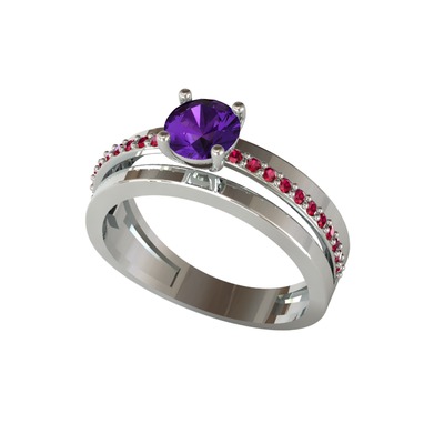 Ametist ve rodolit garnet 8 ayar beyaz altın yüzük