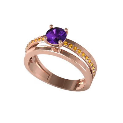 Ametist ve sitrin 18 ayar rose altın yüzük