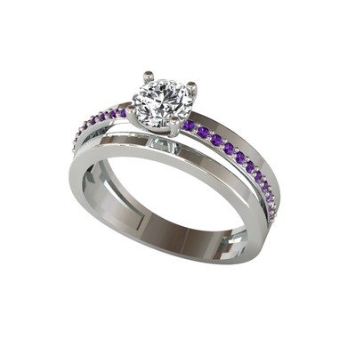 Beyaz zirkon ve ametist 925 ayar gümüş yüzük