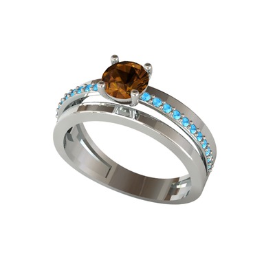 Dumanlı kuvars ve akuamarin 925 ayar gümüş yüzük