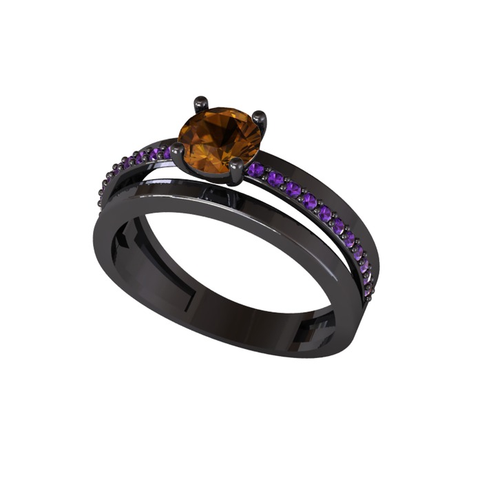 Dumanlı kuvars ve ametist 925 ayar siyah rodyum kaplama gümüş yüzük