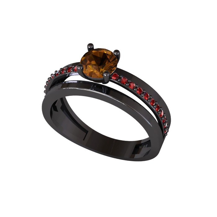 Dumanlı kuvars ve garnet 925 ayar siyah rodyum kaplama gümüş yüzük