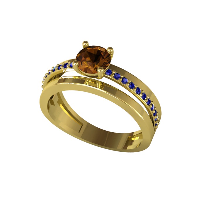 Dumanlı kuvars ve lab safir 925 ayar altın kaplama gümüş yüzük