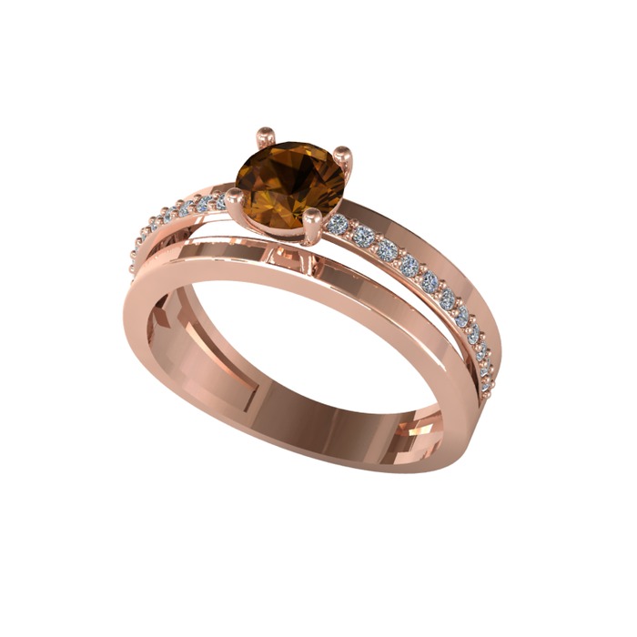 Dumanlı kuvars ve pırlanta 14 ayar rose altın yüzük (0.242 karat)
