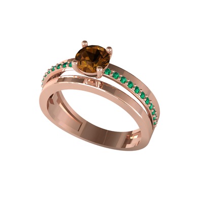 Dumanlı kuvars ve yeşil kuvars 925 ayar rose altın kaplama gümüş yüzük
