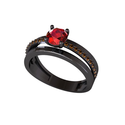 Garnet ve dumanlı kuvars 925 ayar siyah rodyum kaplama gümüş yüzük