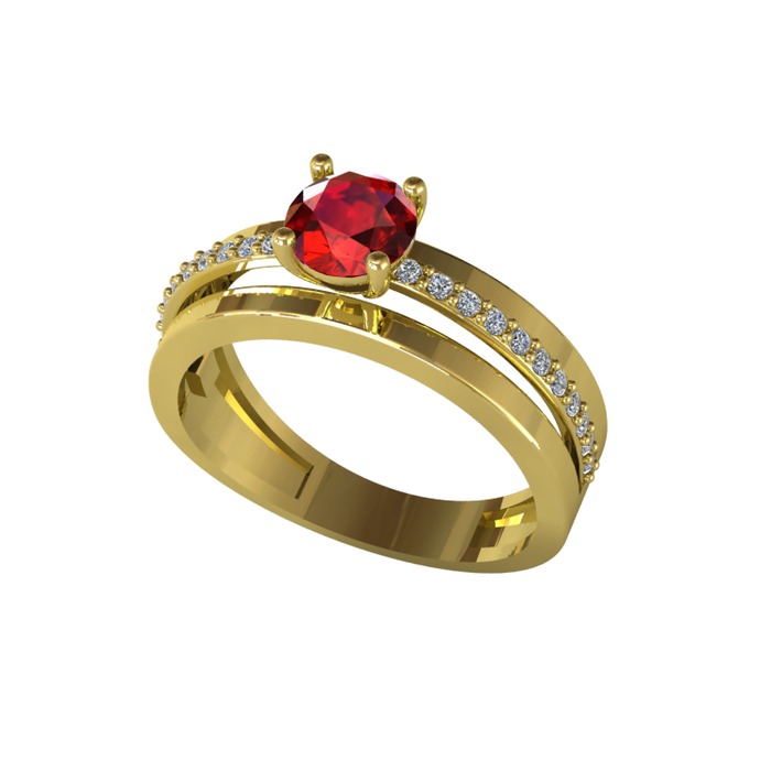 Garnet ve pırlanta 8 ayar altın yüzük (0.242 karat)