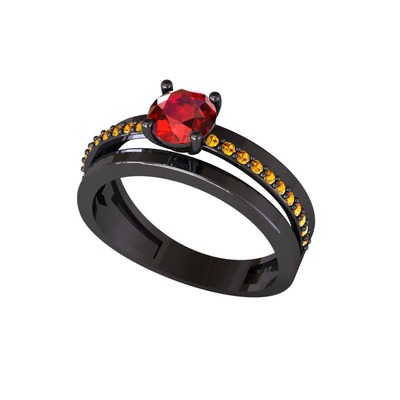 Garnet ve sitrin 925 ayar siyah rodyum kaplama gümüş yüzük