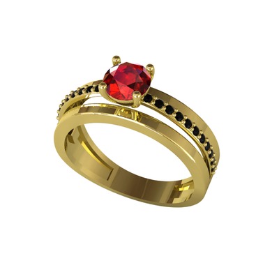 Garnet ve siyah zirkon 14 ayar altın yüzük