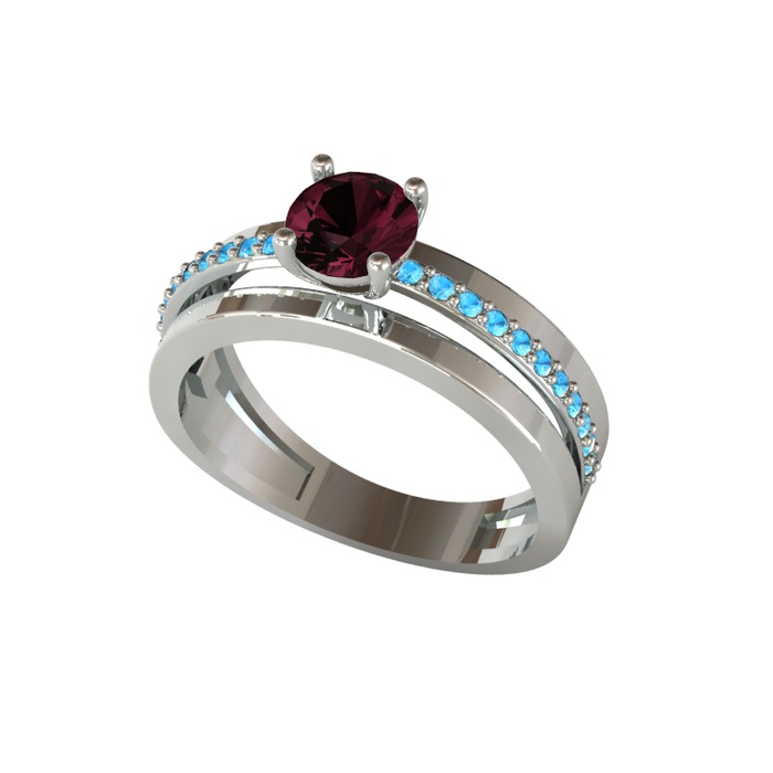 Kök yakut ve akuamarin 14 ayar beyaz altın yüzük