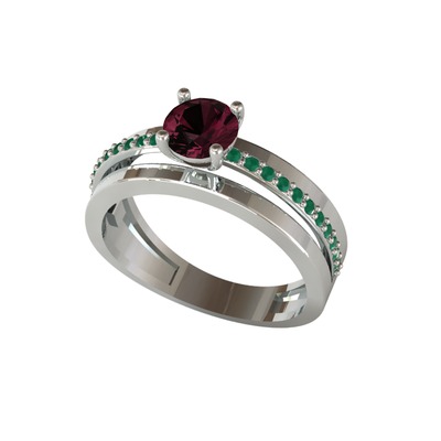 Kök yakut ve kök zümrüt 8 ayar beyaz altın yüzük