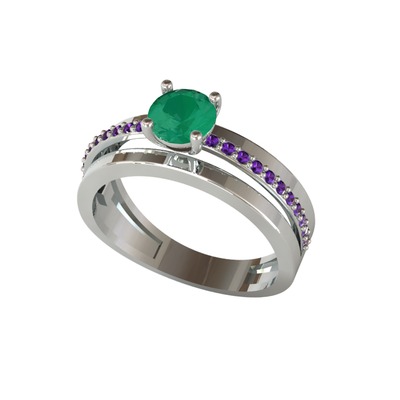 Kök zümrüt ve ametist 18 ayar beyaz altın yüzük