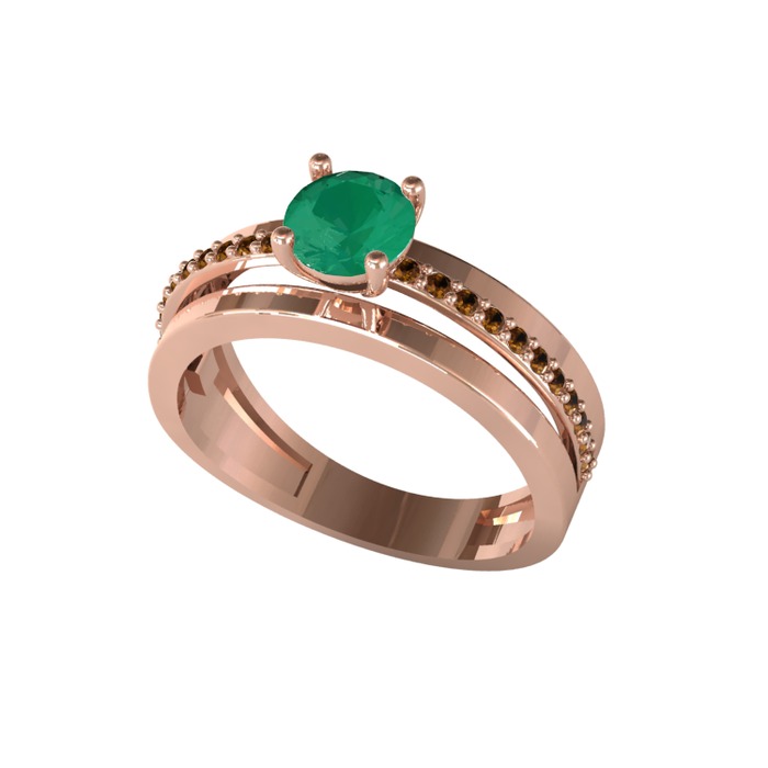 Kök zümrüt ve dumanlı kuvars 8 ayar rose altın yüzük