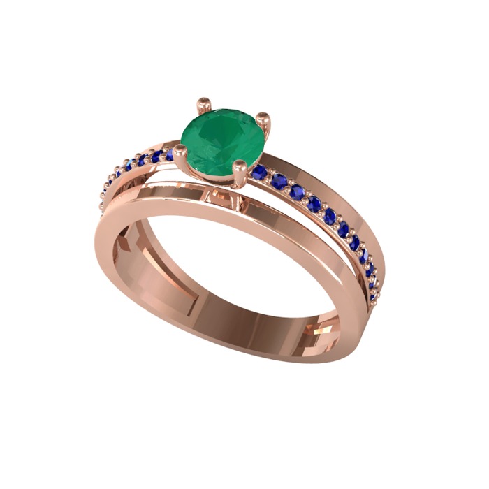 Kök zümrüt ve lab safir 8 ayar rose altın yüzük