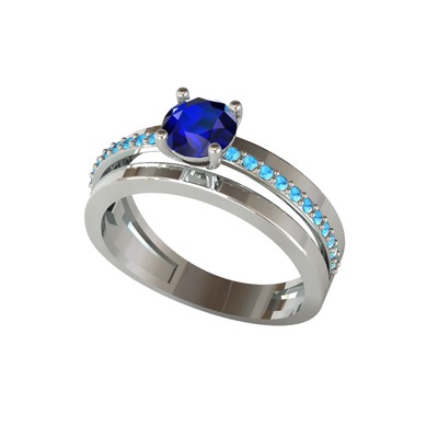 Lab safir ve akuamarin 8 ayar beyaz altın yüzük