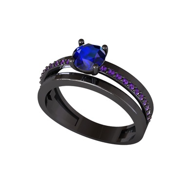 Lab safir ve ametist 925 ayar siyah rodyum kaplama gümüş yüzük