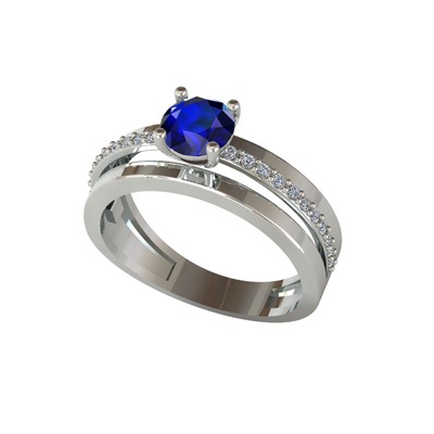 Lab safir ve pırlanta 18 ayar beyaz altın yüzük (0.242 karat)