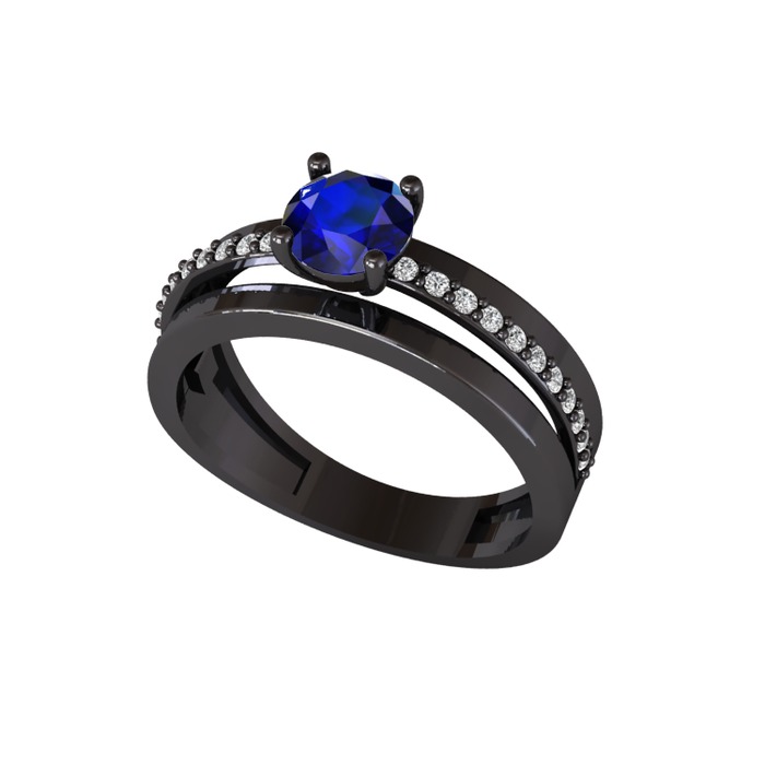 Lab safir ve swarovski 925 ayar siyah rodyum kaplama gümüş yüzük