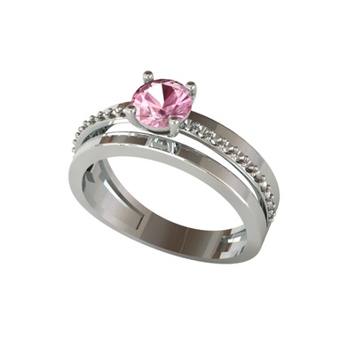 Pembe kuvars 8 ayar beyaz altın yüzük