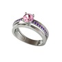 Pembe kuvars ve ametist 8 ayar beyaz altın yüzük