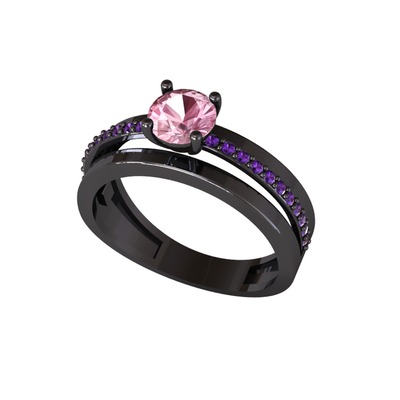 Pembe kuvars ve ametist 925 ayar siyah rodyum kaplama gümüş yüzük