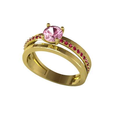 Pembe kuvars ve rodolit garnet 14 ayar altın yüzük