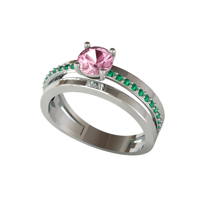 Pembe kuvars ve yeşil kuvars 18 ayar beyaz altın yüzük