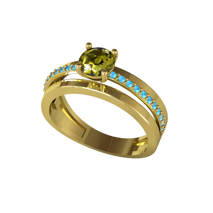 Peridot ve akuamarin 18 ayar altın yüzük