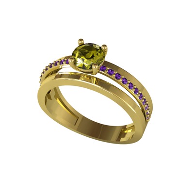 Peridot ve ametist 925 ayar altın kaplama gümüş yüzük