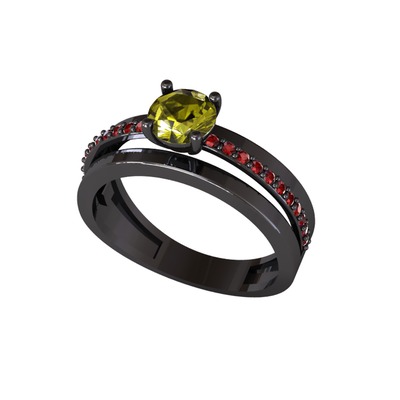 Peridot ve garnet 925 ayar siyah rodyum kaplama gümüş yüzük