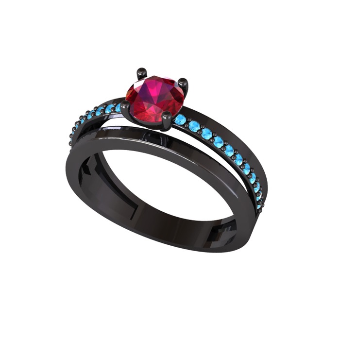 Rodolit garnet ve akuamarin 925 ayar siyah rodyum kaplama gümüş yüzük