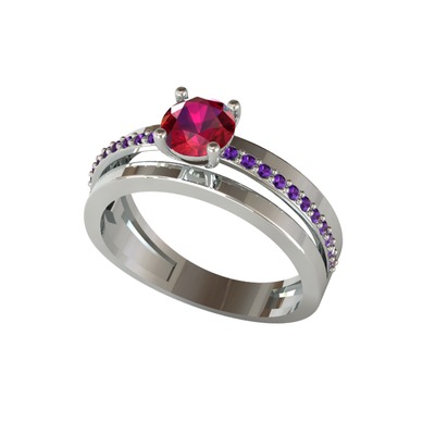 Rodolit garnet ve ametist 925 ayar gümüş yüzük