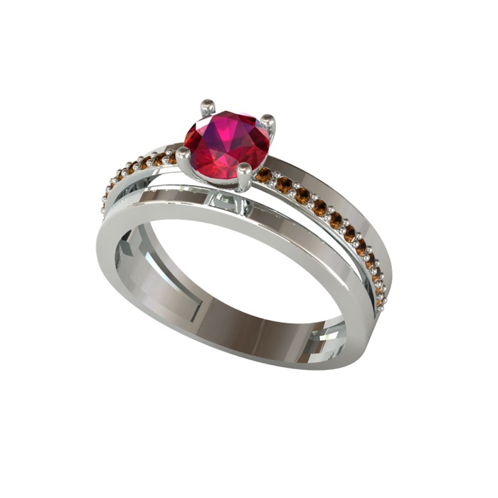 Rodolit garnet ve dumanlı kuvars 8 ayar beyaz altın yüzük
